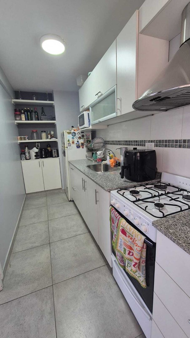 Cocina independiente con muebles completos, grifería monocomando y espacio para lavarropas